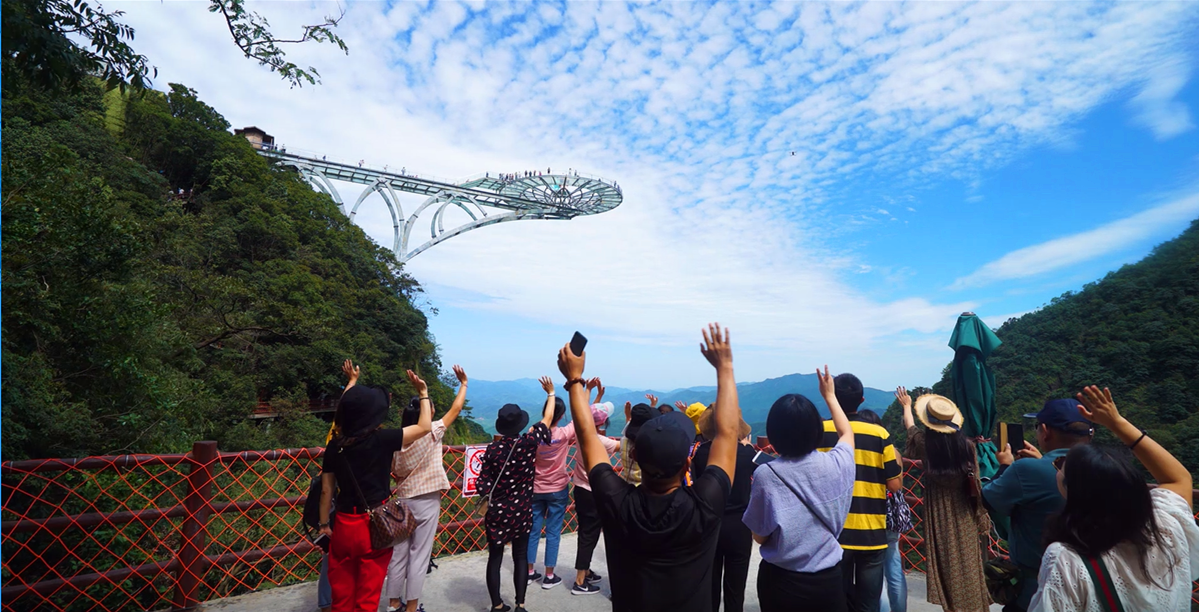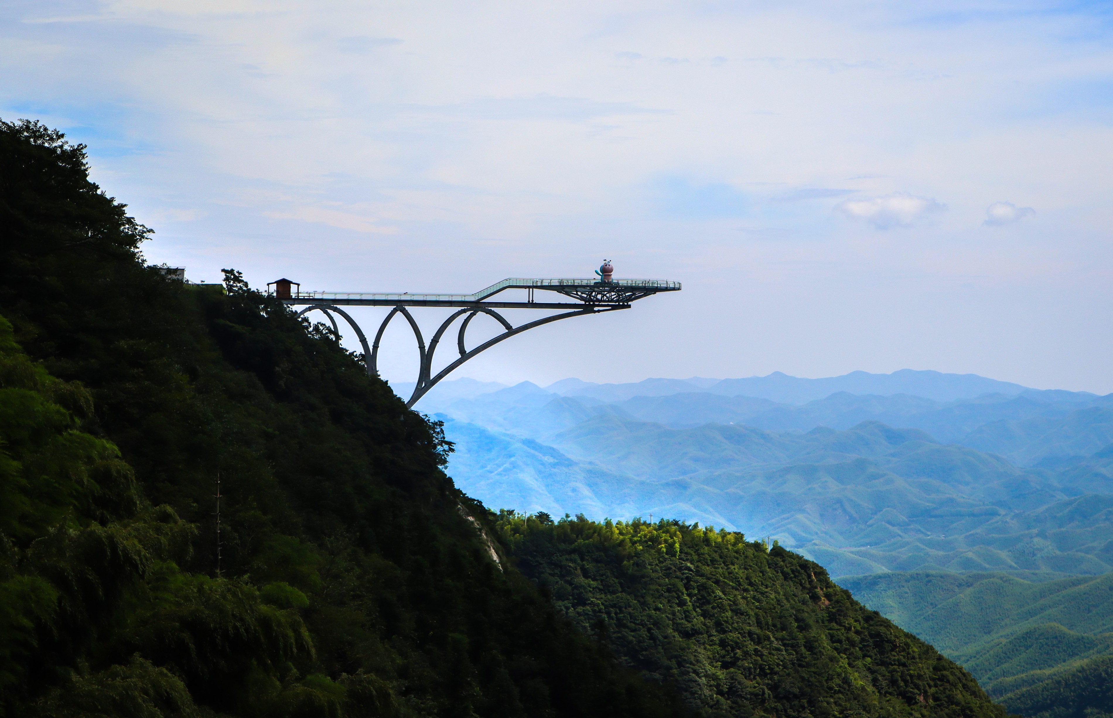 The flying saucer is 88 meters high, with a vertical drop of 200 meters and a diameter of 24 meters. It is the first single-armed overhanging in Asia. A saucer-shaped extension on a steep cliff, made of transparent glass, is like walking on a cloud. Look far, beautiful mountains and rivers, take in a glance.